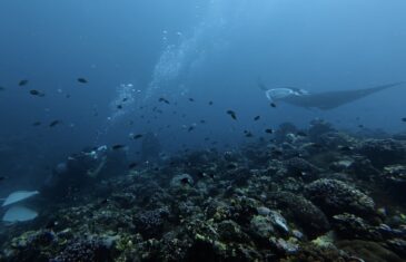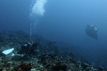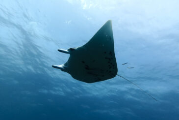 このミニマンタは、泳ぎの練習なのかゴキゲンなのか…。