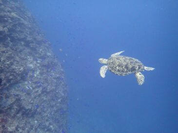 もう、本当に正面衝突レベルの眼前にアオウミガメ![]()
