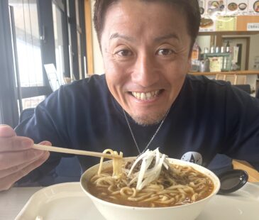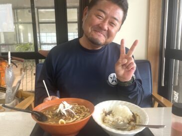 戸田さんは、牛骨そばにカレーライスの合わせ技